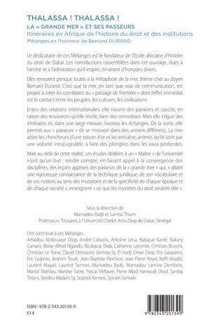 Le dédicataire de ces Mélanges est le fondateur de l’Ecole africaine d’histoire du droit de Dakar. Les contributions renvoient presque toutes à la métaphore de la mer, thème cher au doyen Bernard Durand. C’est que la mer, en tant que voie de communication, est propre à créer les conditions du « passage de frontière » dont l’effet immédiat est le contact entre les peuples, les cultures, les civilisations. Enjeu des relations internationales, elle nourrit des passions et suscite, en raison des ressources qu’elle recèle, bien des convoitises. Mais elle irrigue des itinéraires et, dans une large mesure, favorise les échanges. De la sorte, elle permet aux « passeurs » de se mouvoir dans des univers différents.