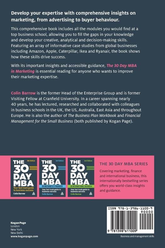 From advertising and promotion to buyer behaviour and budgets, this comprehensive book includes all of the modules you would find at a top business school, allowing you to fill the gaps in your knowledge and develop your creative, analytical and decision-making skills. It also features an array of fascinating case studies from some of the world's most successful businesses, clarifying how these skills drive success. With its comprehensive insights and accessible guidance, The 30 Day MBA in Marketing is essential reading whether you are a professional looking to accelerate your career or a student interested in expanding your knowledge. About the 30 Day MBA Series...We publiceren alleen reviews die voldoen aan de voorwaarden voor reviews. Bekijk onze voorwaarden voor reviews.