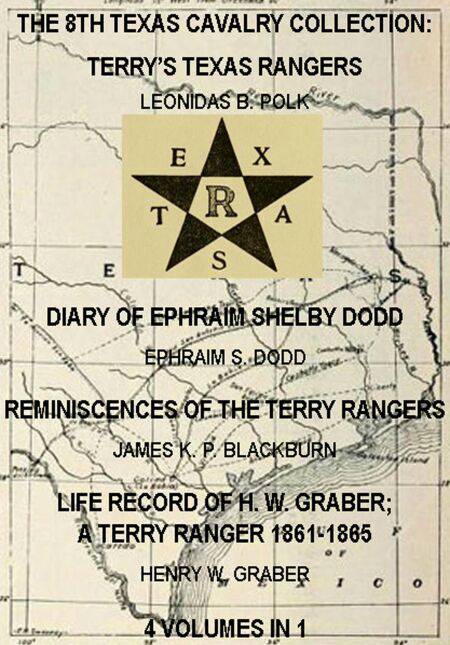 "The 8th Texas Cavalry Collection: Terry's Texas Rangers, The Diary Of Ephraim Shelby Dodd, Reminiscences Of The Terry Rangers, Life Record Of H. W. Graber; A Terry Ranger 1861-1865 (4 Volumes In 1) by Leonidas P. Giles, Ephraim S. Dodd, James K. P. Blackburn, and Henry W. Graber is a collection of the 1st hand experiences of the authors in the 8th Texas Cavalry known as Terry's Texas Rangers. This regiment was a famous Texas cavalry units in the Civil War. From 1,200 men at the start, they could mustered 200 in their last charge at Bentonville, North Carolina in 1865.