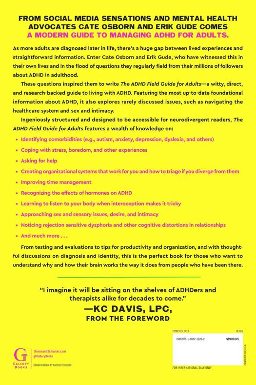 From the social media sensations and mental health advocates Cate Osborn (@Catieosaurus) and Erik Gude (@ErikGude) comes a modern and refreshingly honest guide to managing ADHD for adults, “that gives solid information and practical tips in a format that you can actually consume” (KC Davis, LPC, New York Times bestselling author).