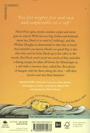 Huck Finn spits, swears, smokes a pipe, and never goes to school. With his too-big clothes and battered straw hat, Huck is in need of "civilizing," and the Widow Douglas is determined to take him in hand. And wouldn't you know, Huck's no-good Pap is also after him and he locks Huck up in his cabin in the woods. But Huck won't stand too much of this, and after a daring escape, he takes off down the Mississppi on a raft with an runaway slave called Jim. But plenty of dangers wait for them along the river--will they survive and win their freedom?