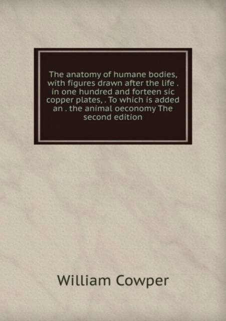 With figures drawn after the life in one hundred and forteen sic copper plates. To which is added an the animal oeconomy. The second edition. This book, "The anatomy of humane bodies", by Cowper William, is a replication. It has been restored by human beings, page by page, so that you may enjoy it in a form as close to the original as possible. This book was created using print-on-demand technology. Thank you for supporting classic literature.