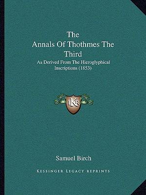 The Annals of Thothmes the Third is a book written by Samuel Birch in 1853. The book is a detailed exploration of the hieroglyphical inscriptions found in ancient Egyptian tombs and temples, specifically those related to the reign of Pharaoh Thothmes III. Birch uses his expertise in Egyptology to translate and interpret the inscriptions, providing readers with a comprehensive understanding of the historical events and cultural practices of the time. The book is a valuable resource for scholars and enthusiasts of ancient Egyptian history and culture, offering a unique insight into the life and times of one of Egypt's most powerful rulers.This scarce antiquarian book is a facsimile reprint of the old original and may contain some imperfections such as library marks and notations. Because we believe this work is culturally important, we have made it available as part of our commitment for protecting, preserving, and promoting the world's literature in affordable, high quality, modern editions, that are true to their original work.