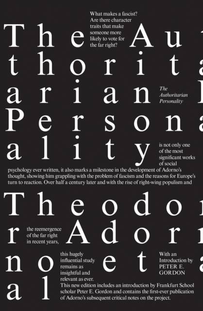 What makes a fascist? Are there character traits that make someone more likely to vote for the far right? The Authoritarian Personality is not only one of the most significant works of social psychology ever written, it also marks a milestone in the development of Adorno's thought, showing him grappling with the problem of fascism and the reasons for Europe's turn to reaction. Over half a century later, and with the rise of right-wing populism and the reemergence of the far-right in recent years, this hugely influential study remains as insightful and relevant as ever.