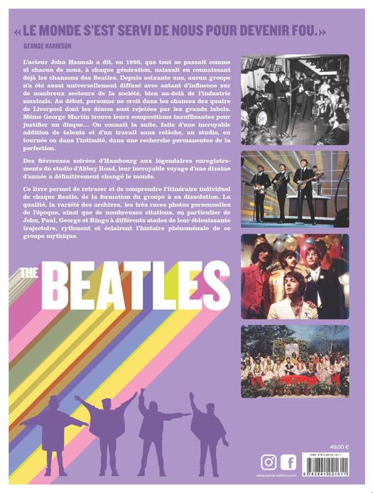 L’acteur John Hannah a dit, en 1998, que tout se passait comme si chacun de nous, à chaque génération, naissait en connaissant déjà les chansons des Beatles. Depuis soixante ans, aucun groupe n’a été aussi universellement diffusé avec autant d’influence sur de nombreux secteurs de la société, bien au-delà de l’industrie musicale. Au début, personne ne croit dans les chances des quatre de Liverpool dont les démos sont rejetées par les grands labels. Même George Martin trouve leurs compositions insuffisantes pour justifier un disque… On connaît la suite, faite d’une incroyable addition de talents et d’un travail sans relâche, au studio, en tournée ou dans l’intimité, dans une recherche permanentes de la perfection. Des fiévreuses soirées d’Hambourg aux légendaires enregistrements du studio d’Abbey Road, leur incroyable voyage d’une dizaine d’année a définitivement changé le monde. Ce livre permet de retracer et de comprendre l’itinéraire individuel de chaque Beatle, de la formation du groupe à sa dissolution. La qualité, la variété des archives, les très rares photos personnelles de l’époque, ainsi que de nombreuses citations, en particulier de John, Paul, George et Ringo à différents stades de leur éblouissante trajectoire, rythment et éclairent l’histoire phénoménale de ce groupe mythique.