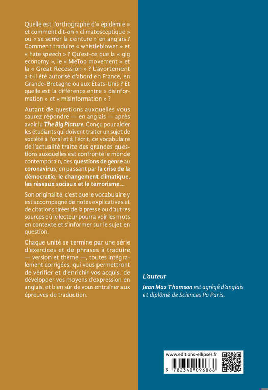 Cet ouvrage s’adresse aux étudiants de classes préparatoire, d’IEP, de licences et masters qui doivent traiter un sujet de société à l’oral et l’écrit en anglais.
