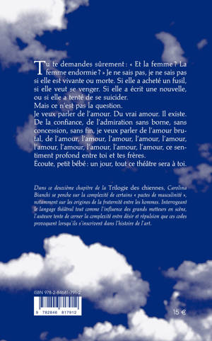 The Brotherhood fait suite à La Mariée et Bonne nuit Cendrillon qui avait provoqué une onde de choc lors de sa première à Avignon où Carolina Bianchi amenait des réflexions sur la performance et la théâtralité, à travers un lit d’histoires de viols brutaux et de meurtres de femmes. Dans ce deuxième chapitre de la Trilogie des chiennes, Carolina Bianchi se penche sur la complexité de certains « pactes de masculinité », notamment sur les origines de la fraternité entre les hommes, mettant en lumière les codes mutuels violents qui contribuent à normaliser et perpétuer le viol et la violence sexuelle à travers leur lexique. Carolina Bianchi utilise les principes du théâtre pour articuler des voies possibles à cette discussion, créant des liens forts entre la représentation et le traumatisme réel, les structures de pouvoir dans l’art et la poésie radicale, les origines de la misogynie et une sexualité en crise. La structure de cette réflexion se révèle être un piège, affaiblissant l’auteurité de Bianchi et la transformant en un personnage qui subit les conséquences d’avoir scruté cette « fraternité » de si près.