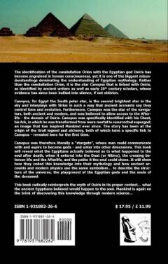 A radical reinterpretation of the myth of Osiris and Isis. Humankind has misidentified the constellation Orion with the Egyptian god Osiris in Egyptian mythology. Rather, it is the star Canopus that is linked with Osiris, as identified by both ancient writers and early 20th century scholars. Canopus, for Egypt the South polar star, is the second-brightest star and interplays with Sirius in such a way that ancient accounts surmised that the two stars controlled time. It was the navigators star, allowing access to the afterlife: the domain of Osiris. Canopus was specifically identified with Osirus' Ark, where he was transformed from mere mortal to resurrected supergod. Canopus was therefore literally a stargate, where men could communicate with and aspire to become gods -- and enter into other dimensions. This book will reveal what the Egyptians actually believed about: what happened to the soul after death; how they coded this knowledge into their mythology; how ancient accounts and modern physics use the same symbolism to describe the structure of the universe, the playground of the Egyptian gods and the souls of the deceased; ...and how the Canopus myth is linked to the Grail lege