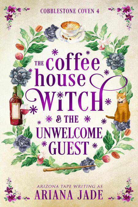 The Coffee House Witch & The Unwelcome Guest is book 4 in the Cobblestone Coven series and it follows witch Cassiopeia and her return to her hometown. It's a cozy fantasy with a sapphic romance in a magical world with talking animals and lots of light-hearted banter.