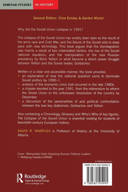 The collapse of the Soviet experiment was one of the major turning points in twentieth century history. During the period of 'perestroika' the Soviet Union took the first steps to becoming a civil society and started to re-examine it's Stalinist past. This new text examines the Gorbachev years, asks why the Soviet Union collapsed in 1991, and offers a succinct and accessible interpretation of the remarkable events that led to the collapse.