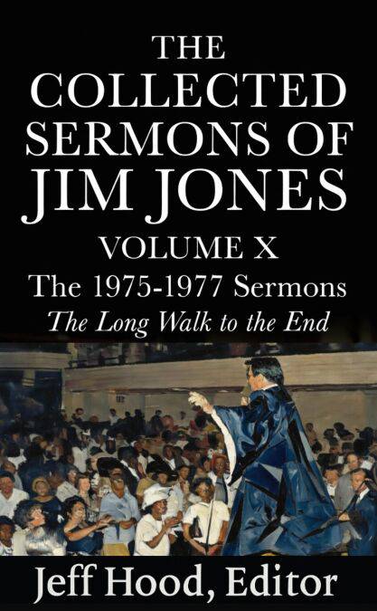 The Collected Sermons of Jim Jones, Volume X: The 1975–1977 Sermons — The Long Walk to the End presents eleven full sermon transcripts from the federally catalogued Q-number archive — Q1018, Q1028a-3, Q1056-4, Q162, Q454, Q162 (Philadelphia 1976), Q965, Q969, Q945, Q987, and Q1028a-2 — covering the final three years before the catastrophe of November 18, 1978. This is the last volume in the series, and it reads like one.