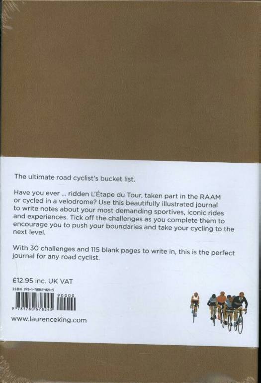 A journal for road cyclists who want to take their sport to the next level. Whether they want to ride in a velodrome, take part in the RAAM or ride L'Etape du Tour, it provides the bucket list for them. It contains 30 illustrated challenges and 115 blank pages for users to write in.