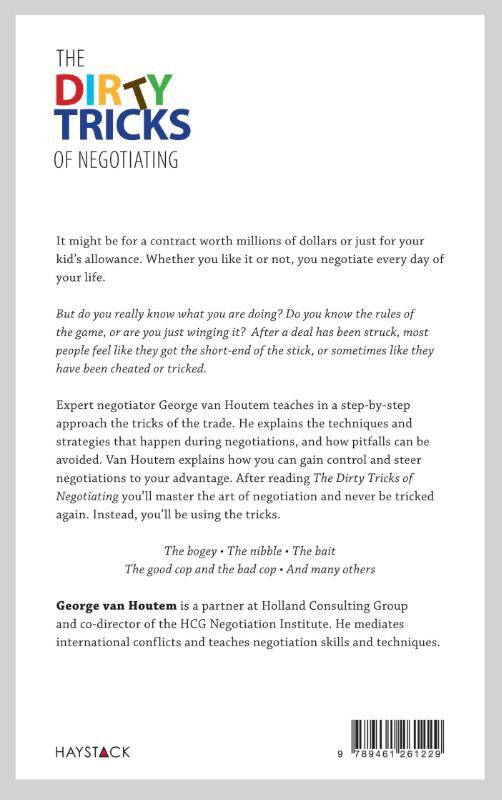 Expert negotiator George van Houtem teaches in a step-by-step approach the tricks of the trade. He explains the techniques and strategies that happen during negotiations, and how pitfalls can be avoided. Van Houtem explains how you can gain control and steer negotiations to your advantage. After reading The Dirty Tricks of Negotiating you'll master the art of negotiation and never be tricked again. Instead, you'll be using the tricks.