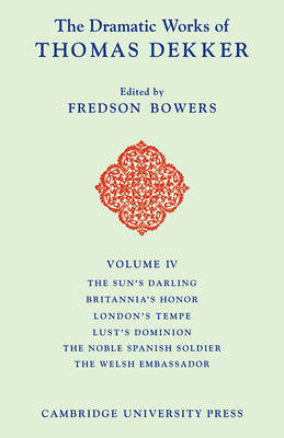 The final volume of the Cambridge Dekker contains The Welsh Ambassador, The Noble Spanish Soldier, Lust's Dominion, The Sun's Darling, London's Tempe and Britannia's Honour. Professor Bowers's edition is recognized as a model critical old-spelling text, where the techniques of strong textual and bibliographical study have been methodically applied to one of the least accessible of the Elizabethan dramatists. The introductions to each play provide textual analyses that set out the circumstances of publication and transmission. The critical apparatus gives press variants derived from collations, editorial emendations to the copy-text and other textual notes.
