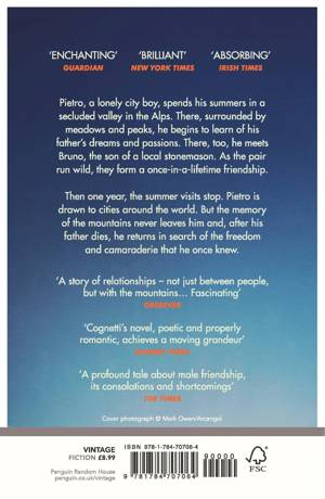 Pietro, a lonely city boy, spends his childhood summers in a secluded valley in the Alps. Bruno, the cowherd son of a local stonemason, knows the mountains intimately. Together they spend many summers exploring the mountains' meadows and peaks, discovering the similarities and differences in their lives. As time passes, the two boys come to find the true meaning of friendship and camaraderie even as their paths diverge, Bruno's in the mountains and Pietro's in cities across the globe. A modern Italian masterpiece, The Eight Mountains is a lyrical coming-of-age story spanning three decades; a novel about the power of male friendships and a meditation on loyalty, being in nature, and finding one's place in the world.
