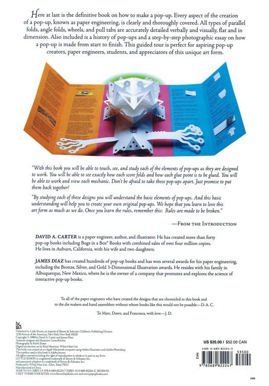 Here at last is the definitive book on how to make a pop-up. Every aspect of the creation of a pop-up, known as paper engineering, is clearly and thoroughly covered. All types of parallel folds, angle folds, wheels, and pull tabs are accurately detailed verbally and visually, flat and in dimension. Also included is a history of pop-ups and a step-by-step photographic essay on how a pop-up is made from start to finish. This guided tour is perfect for aspiring pop-up creators, paper engineers, students, and appreciators of this unique art form.