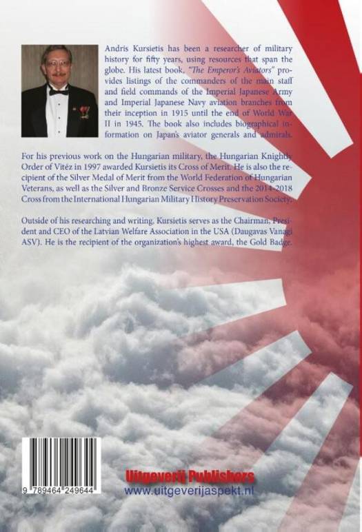Andris Kursietis has been a researcher of military history for fifty years, using resources that span the globe. His latest book, "The Emperor's Aviators" pro-vides listings of the commanders of the main staff and field commands of the Imperial Japanese Army and Imperial Japanese Navy aviation branches from their inception in 1915 until the end of World War II in 1945. The book also includes biographical in-formation on Japan's aviator generals and admirals.