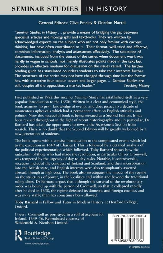 An exploration of Cromwell's government and the political experimentation of the 1650s. Concise and accessible, it does full justice to a decade of momentous upheavals which had a permanent effect on British politics.