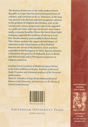 Two renowned historians address the issue of religious tolerance in the Dutch-ruled Brazil in the seventeenth century. The reputation of the Dutch for religious tolerance was never more justified than in their Brazilian colony, where Catholics and Jews coexisted peacefully alongside the Protestants, all enjoying freedom of religious belief and practice. This tolerance was not exclusive to the Dutch: the Portuguese in Brazil likewise accepted various forms religious worship.