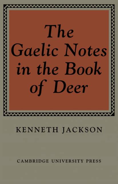 The Book of Deer, 43 folios of manuscript, containing parts of the Gospels and the Apostles' Creed, is one of the treasures of the Cambridge University Library. The Book is important not so much for its primary contents as for the notes in Gaelic which have been added to it in some of the available blank spaces. These notes record the foundation 'myth' of the monastery of Deer in north-east Aberdeenshire, and formal recordings of various grants of lands to the monastery. The language in which the notes are written is the form of Gaelic spoken in Buchan during the earlier part of the twelfth century, which means that this manuscript predates the next earliest surviving Scots Gaelic documents by almost three centuries. Professor Jackson presents a diplomatic text of the notes, based on a careful study of the original manuscript, together with an edited text, a translation, discussion, notes and a glossary.