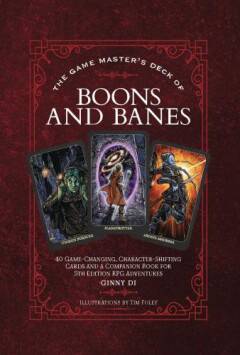 Ginny Di and featuring 20 boon and 20 bane cards, all stunningly illustrated by Tim Foley, this deck will help you advance player goals or hurl them (and your story) in an entirely different direction. Upon drawing a bane card, for example, a character might suffer a curse that threatens to strangle them the more active they are. However, pulling a boon could very well bestow a blessing from a higher power, such as a pair of guardian wolves that travel with the character wherever they go. The exact composition of the deck is up to the GM. The boons are a great temptation--but drawing a bane could bring about a crippling result. Players will need to weigh the odds every time.