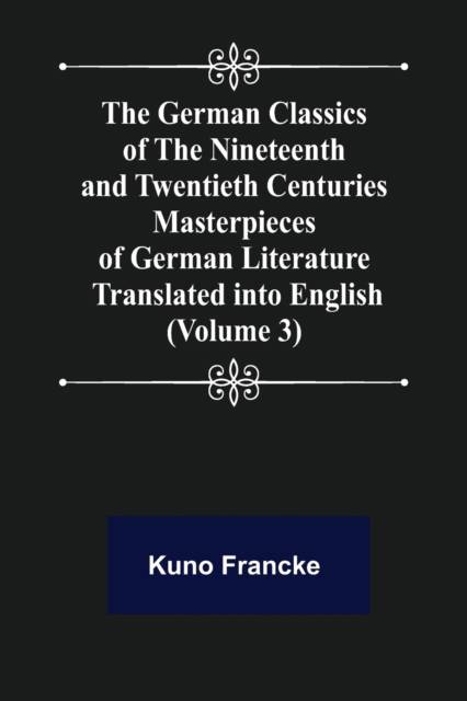 The book "" The German Classics of the Nineteenth and Twentieth Centuries (Volume 3) Masterpieces of German Literature Translated into English "", has been considered important throughout the human history, and so that this work is never forgotten we have made efforts in its preservation by republishing this book in a modern format for present and future generations. This whole book has been reformatted, retyped and designed. These books are not made of scanned copies and hence the text is clear and readable.