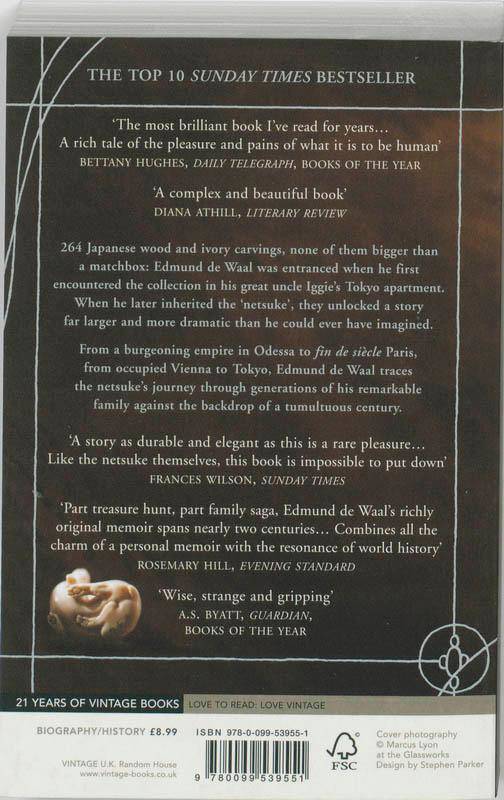 **THE NUMBER ONE SUNDAY TIMES BESTSELLER** **WINNER OF THE 2010 COSTA BIOGRAPHY AWARD** 264 wood and ivory carvings, none of them bigger than a matchbox: Edmund de Waal was entranced when he first encountered the collection in his great uncle Iggie's Tokyo apartment.