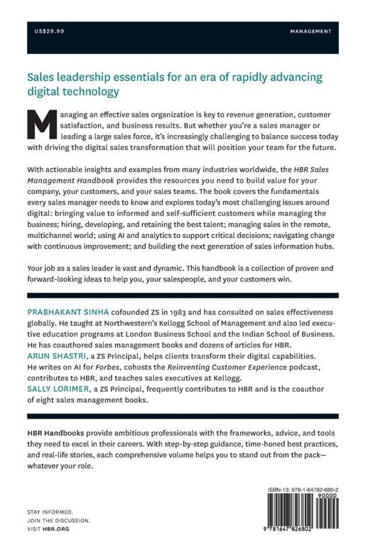 With actionable insights and examples from many industries worldwide, the HBR Sales Management Handbook provides the resources you need to build value for your company, your customers, and your sales teams. The book covers the fundamentals every sales manager needs to know and explores today's most challenging issues around digital: bringing value to informed and self-sufficient customers while managing the business; hiring, developing, and retaining the best talent; managing sales in the remote, multichannel world; using AI and analytics to support critical decisions; navigating change with continuous improvement; and building the next generation of sales information hubs.