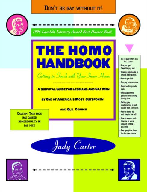 With wit, humor, worksheets, and drawings, The Homo Handbook is a laugh-out-loud guide to all things gay. Stand-up comic Judy Carter speaks out--way out--in this entertaining and helpful guide to "being a homo". For gays and lesbians thinking about coming out, she provides a dose of courage; for those just out of the closet, she offers reaffirmation; and for the entire gay and lesbian population, she celebrates the joys and freedoms of just being yourself. With humor, fifty line drawing, charts, and worksheets pepper the pages of the handbook that will guide the reader closer to the big moment.