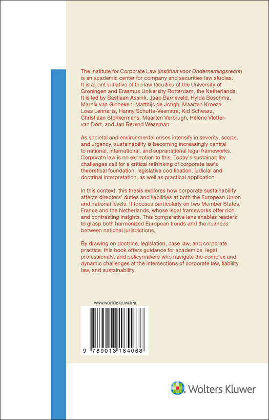 This book offers a timely and in-depth analysis of how corporate sustainability is reshaping corporate law, focusing on directors’ duties and liabilities. With a comparative study of France and the Netherlands, it provides essential insights for legal professionals navigating evolving EU and national frameworks.