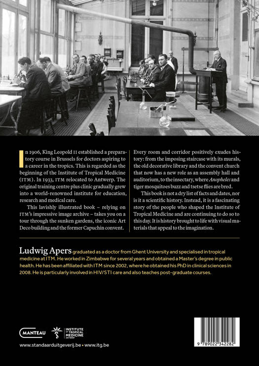 In 1906, King Leopold II established a preparatory course in Brussels for doctors aspiring to a career in the tropics. This is regarded as the beginning of the Institute of Tropical Medicine (itm). In 1933, itm relocated to Antwerp. The original training centre plus clinic gradually grew into a world-renowned institute for education, research and medical care.This lavishly illustrated book – relying on itm’s impressive image archive – takes you on a tour through the sunken gardens, the iconic Art Deco building and the former Capuchin convent. Every room and corridor positively exudes history: from the imposing staircase with its murals, the old decorative library and the convent church that now has a new role as an assembly hall and auditorium, to the insectary, where Anopheles and tiger mosquitoes buzz and tsetse flies are bred.This book is not a dry list of facts and dates, nor is it a scientific history. Instead, it is a fascinating story of the people who shaped the Institute of Tropical Medicine and are continuing to do so to this day. It is history brought to life with visual materials that appeal to the imagination.