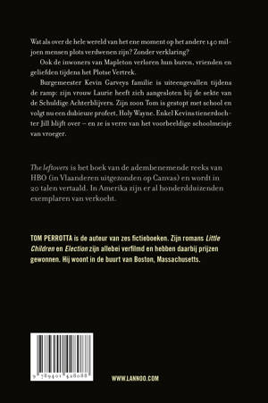 Boek bij de nieuwe adembenemende topreeks van HBO, nu ook op Canvas Wat als over de hele wereld van het ene moment op het andere 140 miljoen mensen plots verdwenen zijn? Zonder verklaring. Ook de inwoners van Mapleton verloren hun buren, vrienden en geliefden tijdens het Plotse Vertrek. Burgemeester Kevin Garveys familie is uiteen gevallen tijdens de ramp: zijn vrouw Laurie heeft zich aangesloten bij de sekte van de Schuldige Achterblijvers. Zijn zoon Tom is gestopt met school en volgt nu een dubieuze profeet, Holy Wayne. Enkel Kevins tienerdochter Jill blijft over - en ze is verre van het voorbeeldige meisje van vroeger.