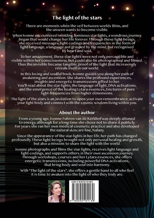 In this loving and soulful book, Ivonne guides you along her path of awakening and ascension. She shares the profound experiences, insights and energetic transmissions gifted to her. You’ll read about the star‑lights, the language of light, DNA activations, and the emergence of the healing Lytara essences, tinctures of pure light‑frequencies from higher dimensions.