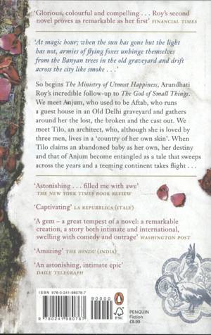 Anjum unrolls a threadbare Persian carpet in a city graveyard that she calls home. We encounter the incorrigible Saddam Hussain, the unforgettable Tilo and the three men who loved her - including Musa whose fate as tightly entwined with hers as their arms always used to be. Tilo's landlord, another former suitor, is now an Intelligence officer posted to Kabul. And then there are the two Miss Jebeens: the first born in Srinagar and buried, aged four, in its overcrowded Martyrs' Graveyard; the second found at midnight, in a crib of litter, on the concrete pavement of New Delhi.