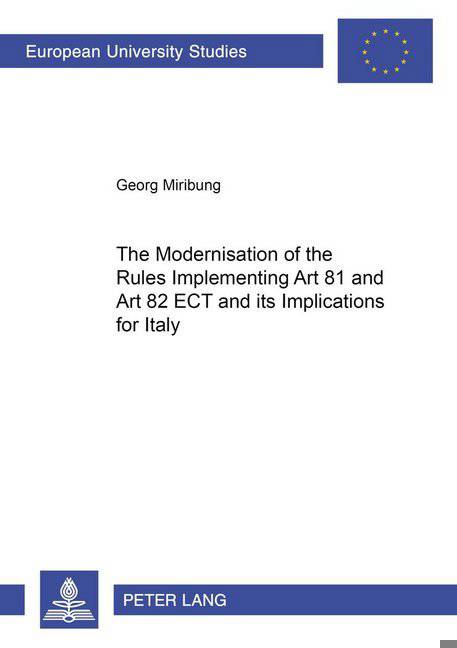 This study deals with EC Competition Law and analyses the switch from centralised enforcement of Art 81 and Art 82 ECT towards decentralised enforcement involving, in addition to the Commission, national authorities and courts. The reform also introduces a system that institutes a regime of ex-post control. One part of the book provides the general background, another concentrates on the reform and discusses the various issues from a general perspective. Finally, the consequences for Italian competition law and its institutions are examined. As will be seen, there are good arguments to reject the main concern in respect of the reform. These are constituted by a feared lack of consistency and uniformity in the application of EC law. Nevertheless, still-to-dos can be found, among others, in respect of effective case allocation or regarding the harmonisation of national procedural rules.