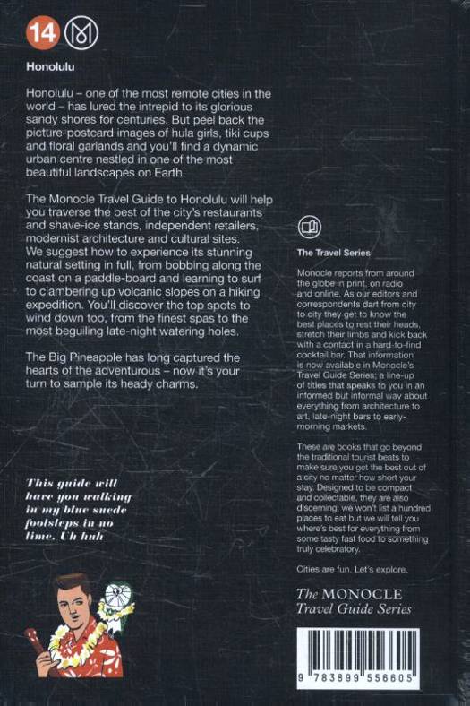 Honolulu --where surfers and hula dancers mingle on pristine beaches beneath a volcano. The capital of paradise, Honolulu is more than just the gateway to surf, sand, and sun. Beyond the beaches and behind the palmlined streets there's a bustling city of culture and the arts, of fine dining and clubs. It's a city by the sea where cultures melt and mingle and the beautiful surroundings are a backdrop for even more incredible goings on. The Monocle team has set sail to bring back more than just picture postcard sunsets, reporting on the vibrant nightlife in Chinatown, the starred chefs and farmers markets, the pan-Pacific arts scene, and more. This guide also provides unique possibilities for getting away from it all: make Honolulu your base for hikes up volcanic mountains and relaxing beach excursions --or finally learn how to surf. The city is truly a world apart. And now you've got the key.