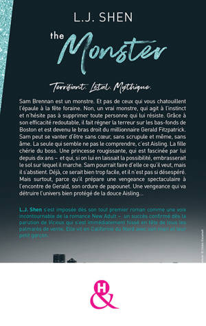 Sam Brennan est un monstre. Et pas de ceux qui vous chatouillent l’épaule à la fête foraine. Non, un vrai monstre, qui agit à l’instinct et n’hésite pas à supprimer toute personne qui lui résiste. Grâce à son efficacité redoutable, il fait régner la terreur sur les bas-fonds de Boston et est devenu le bras droit du millionnaire Gerald Fitzpatrick. Sam peut se vanter d’être sans cœur, sans scrupule et même, sans âme. La seule qui semble ne pas le comprendre, c’est Aisling. La fille chérie du boss. Une princesse rougissante, qui est fascinée par lui depuis dix ans – et qui, si on lui en laissait la possibilité, embrasserait le sol sur lequel il marche. Sam pourrait faire d’elle ce qu’il veut, mais il s’abstient. Déjà, ce serait bien trop facile, et il n’est pas si désespéré. Mais surtout, parce qu’il prépare une vengeance spectaculaire à l’encontre de Gerald, son ordure de papounet. Une vengeance qui va détruire l’univers bien protégé de la douce Aisling…