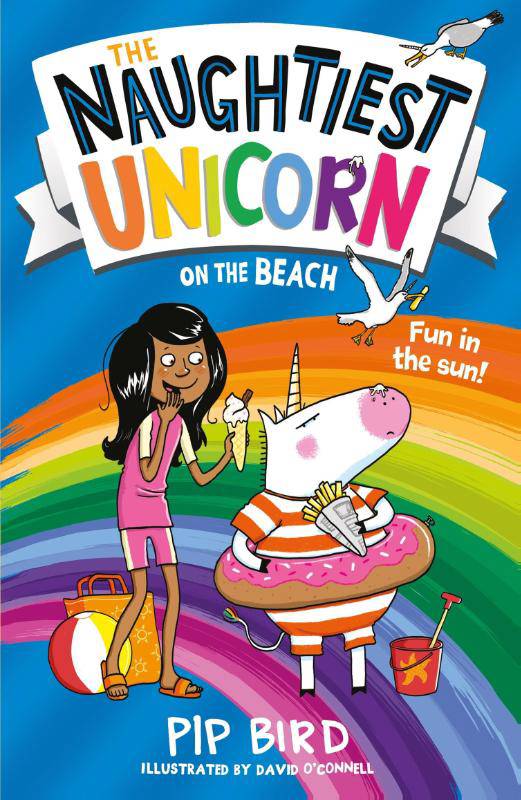 Blow up your inflatable, apply the factor 50 and polish those sunnies... Mira and Dave the naughtiest unicorn are going to the BEACH! Mira can't wait to build a GIANT sandcastle (although Dave is more interested in eating a GIANT GLITTERY ICE-CREAM).