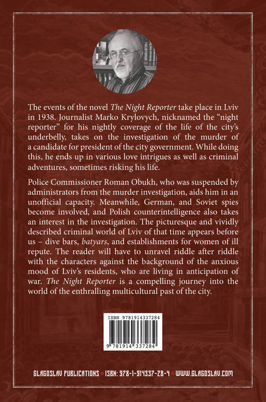 The reader will have to unravel riddle after riddle with the characters against the background of the anxious mood of Lviv's residents, who are living in anticipation of war.The Night Reporter is a compelling journey into the world of the enthralling multicultural past of the city.