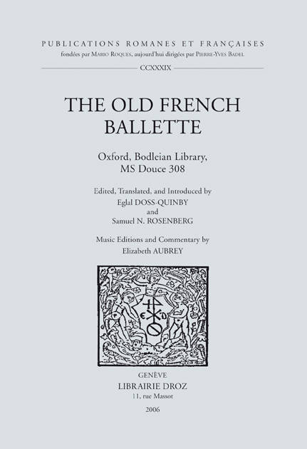 L'important recueil de poesies conserve dans Oxford, Bodleian Library, Douce 308, copie vers 1310, est le seul chansonnier des trouveres dont les pieces soient classees par genre, de preference a d'autres criteres. Sous la rubrique "Ci en comancent les balletes" sont regroupes cent quatre-vingt-huit textes anonymes, destines a la danse bien que la musique n'y figure pas. Les ballettes ont joue un role determinant dans le developpement du lyrisme medieval, notamment dans la genese des formes fixes a refrain du XIVe siecle. Compose principalement de pieces uniques, le recueil qu'editent Eglal Doss-Quinby, Samuel N. Rosenberg, et Elizabeth Aubrey illustre une tradition lyrique elaboree en Lorraine, contemporaine du grand chant courtois des trouveres, mais que n'avaient pas reconnue, au XIIIe siecle, les compilateurs de chansonniers conventionnels. Precedee d'une introduction examinant avec methode les problemes de definition que pose le repertoire, cette edition critique rigoureuse est systematiquement enrichie de la traduction anglaise des ballettes et, pour vingt-six chansons, de la musique qui leur revient et a ete identifiee dans d'autres sources manuscrites.