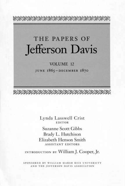 "Being powerless to direct the current, I can only wait to see whither it runs," wrote Jefferson Davis to his wife, Varina, on October 11, 1865, five months after the victorious United States Army took him prisoner. Indeed, in the tumultuous years immediately after the Civil War, Davis found himself more acted upon than active, a dramatic change from his previous twenty years of public service to the United States as a major political figure and then to the Confederacy as its president and commander in chief. Volume 12 of The Papers of Jefferson Davis follows the former president of the Confederacy as he and his family fight to find their place in the world after the Civil War. A federal prisoner, incarcerated in a "living tomb" at Fort Monroe while the government decided whether, where, and by whom he should be tried for treason, Davis was initially allowed to correspond only with his wife and counsel. Released from prison after two hard years, he was not free from legal proceedings until 1869. Stateless, homeless, and without means to support himself and his young family, Davis lived in Canada and then Europe, searching for a new career in a congenial atmosphere. Finally, in November 1869, he settled in Memphis as president of a life insurance company and, for the first time in four years, had the means to build a new life.Throughout this difficult period, Varina Howell Davis demonstrated strength and courage, especially when her husband was in prison. She fought tirelessly for his release and to ensure their children's education and safety. Their letters clearly demonstrate the Davises' love and their dependence on each other. They both worried over the fate of the South and of family members and friends who had suffered during the war. Though disfranchised, Davis remained careful but not totally silent on the subject of politics. Even while in prison, he wrote without regret of his decision to follow Mississippi out of the Union and of his unswerving belief in the constitutionality of state rights and secession. Likewise, he praised all who supported the Confederacy with their blood and who, like himself, had lost everything.