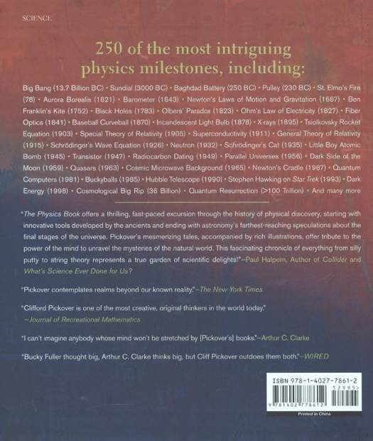 Following the hugely successful The Science Book and The Math Book comes a richly illustrated chronology of physics, containing 250 short, entertaining, and thought-provoking entries. In addition to exploring such engaging topics as dark energy, parallel universes, the Doppler effect, the God particle, and Maxwells demon, the books timeline extends back billions of years to the hypothetical Big Bang and forward trillions of years to a time of "quantum resurrection." Like the previous titles in this series, The Physics Book helps readers gain an understanding of major concepts without getting bogged down in complex details.