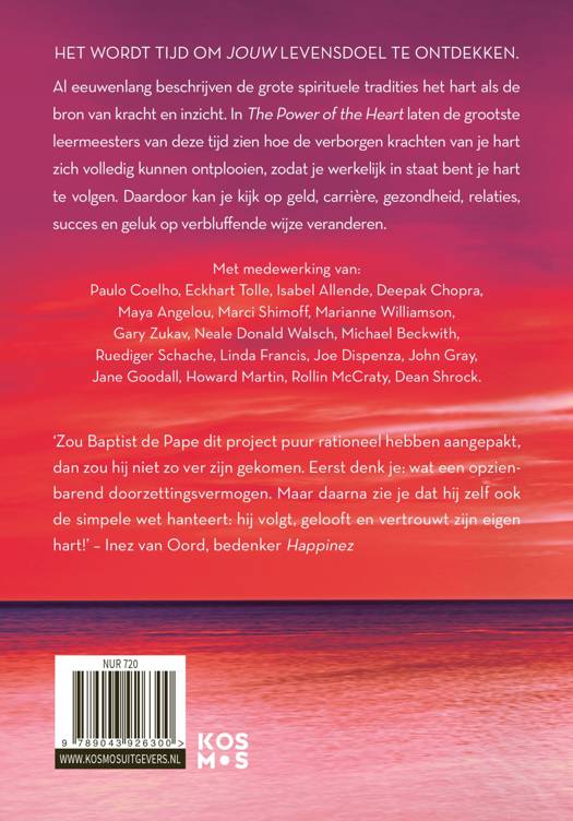 Wat hebben Paulo Coelho, Isabel Allende, Eckhart Tolle, Deepak Chopra en Maya Angelou met elkaar gemeen? Ze onderkennen de noodzaak van het luisteren naar je hart. Baptist de Pape sprak met hen en nog vele anderen. Hij creëerde een boek met een verrassende wetenschappelijke en spirituele onderbouwing dat aan het begin staat van een onstuitbare internationale beweging: laat je hart je gids zijn. Vind je ware potentie en je geluk, leef dichter bij je intuïtie. Coelho, Allende, Tolle, Chopra en Angelou inspireren, De Pape overtuigt.