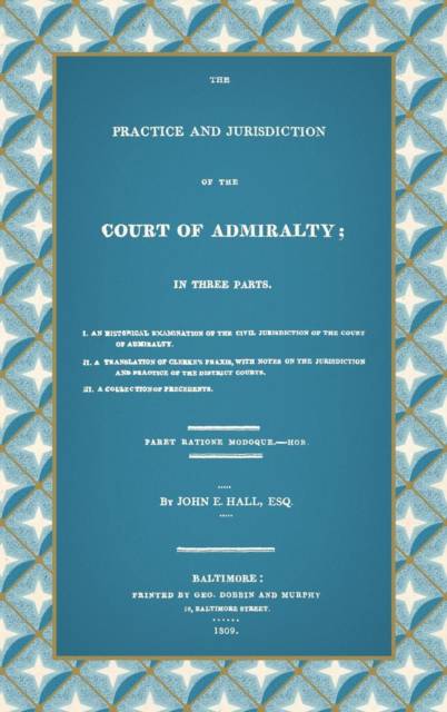 Originally published: Baltimore: Geo. Dobbin and Murphy, 1809. xxviii, iv, 211, [5] pp. Reprint of the first significant American treatise on admiralty law. An extended discussion of American admiralty practice and a useful compendium of relevant cases, Hall's treatise includes a history of Anglo-American admiralty law. First published posthumously in London in 1667 and translated into English in 1722, a valuable feature of this work is its translation of Francis Clerke's Praxis Curiae Admiralitatis Angliae, a work of "unquestionable credit" according to Lord Chancellor Hardwicke. Hall's 1809 translation, which is better than its predecessor, incorporated materials from manuscripts unavailable previously. In addition, he added a history of Anglo-American admiralty law, an extended discussion of American admiralty practice and a useful compendium of relevant cases.