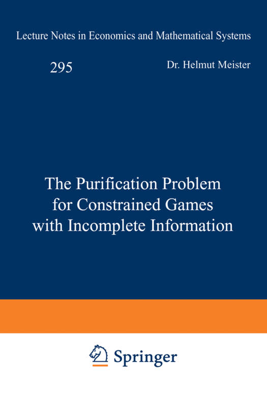 The approach presented in this book combines two aspects of generalizations of the noncooperative game as developed by Nash. First, players choose their acts dependent on certain information variables, and second there are constraints on the sets of decisions for players. After the derivation of a general (Nash)equilibrium existence theorem, some results from purification theory are used to prove the existence of an approximate equilibrium in pure strategies, that is in nonrandomized decision functions. For some types of payoff-functions and constraints, these games prove to have an (exact) equilibrium in pure strategies. The reason for considering constrained games with incomplete information is that, apart from their game-theoretic importance, they have rather widespread application. Market games with a continuum of traders as well as some statistical decision problems are covered with this approach.