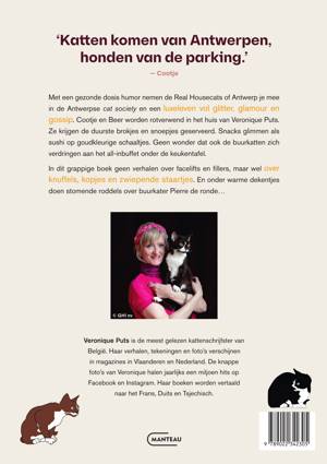 Met een gezonde dosis humor nemen de Real Housecats of Antwerp je mee in de Antwerpse cat society en een luxeleven vol glitter, glamour en gossip. Cootje en Beer worden rotverwend in het huis van Veronique Puts. Ze krijgen de duurste brokjes en snoepjes geserveerd. Snacks glimmen als sushi op goudkleurige schaaltjes. Geen wonder dat ook de buurkatten zich verdringen aan het all-inbuffet onder de keukentafel.In dit grappige boek geen verhalen over facelifts en fillers, maar wel over knuffels, kopjes en zwiepende staartjes. En onder warme dekentjes doen stomende roddels over buurkater Pierre de ronde…