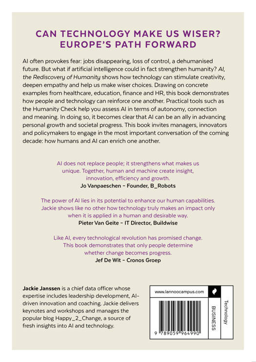 AI often triggers fear: disappearing jobs, loss of control, a dehumanized future. But what if artificial intelligence could actually strengthen our humanity? AI: the Rediscovery of Humanity shows how technology can stimulate creativity, deepen empathy and help us make wiser choices. With concrete examples from healthcare, education, finance and HR, this book demonstrates how humans and technology can reinforce one another. Practical tools such as the