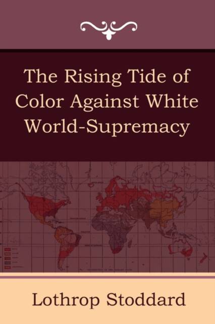 The Rising Tide of Color Against White World-Supremacy (1920), by Lothrop Stoddard, postulates the collapse of white world empire, and of colonialism, because of the population growth among colored peoples. The postulations constitute scientific racism, with which Stoddard concludes for, and advocates, an eugenic separation of the "primary races" of the world. Despite the book's title, Stoddard does not advocate a white race bid for world domination, based on white supremacy, but questions the right of white peoples to invade the lands of other races, and criticizes the European colonial empire powers for imposing their will upon the peoples of Asia. (wikipedia.org) Theodore Lothrop Stoddard (June 29, 1883 - May 1, 1950) was an American political scientist, historian, journalist, anthropologist, eugenicist, pacifist, and anti-immigration advocate who wrote a number of books which are cited by historians as prominent examples of early 20th-century scientific racism. During World War II he wrote Into the Darkness, about the effect of war on Nazi Germany. Stoddard was relatively nonpartisan in his coverage of the Nazi regime, but he did express concern for the welfare of the European Jewish community, foreseeing intense violence against the Jews.