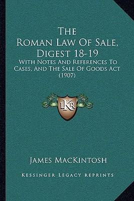 The Roman Law of Sale, Digest 18-19 is a legal text written by James MacKintosh. The book provides a comprehensive analysis of the Roman law of sale, as outlined in Digest 18-19. The text includes detailed notes and references to cases, as well as an examination of the Sale of Goods Act of 1907. The book is intended for legal scholars and practitioners, as well as anyone interested in the history and evolution of commercial law. The Roman Law of Sale, Digest 18-19 is a valuable resource for those seeking a deeper understanding of the legal principles that underpin modern commercial transactions.This scarce antiquarian book is a facsimile reprint of the old original and may contain some imperfections such as library marks and notations. Because we believe this work is culturally important, we have made it available as part of our commitment for protecting, preserving, and promoting the world's literature in affordable, high quality, modern editions, that are true to their original work.