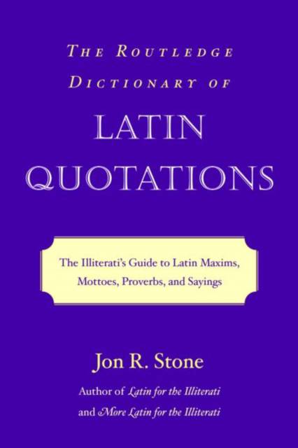 The Routledge Dictionary of Latin Quotations completes our enormously successful and award-winning Latin for the Illiterati series of volumes, rounding off the trilogy with a comprehensive treasury of classic Latin quotations, mottoes, proverbs, and maxims collected from the worlds of philosophy, rhetoric, politics, science, religion, literature, drama, poetics, and war.Distinguished by the combination of user-friendliness and comprehensiveness, this book will provide students, scholars, and general readers with an eminently browsable resource that is as useful as it is enjoyable.